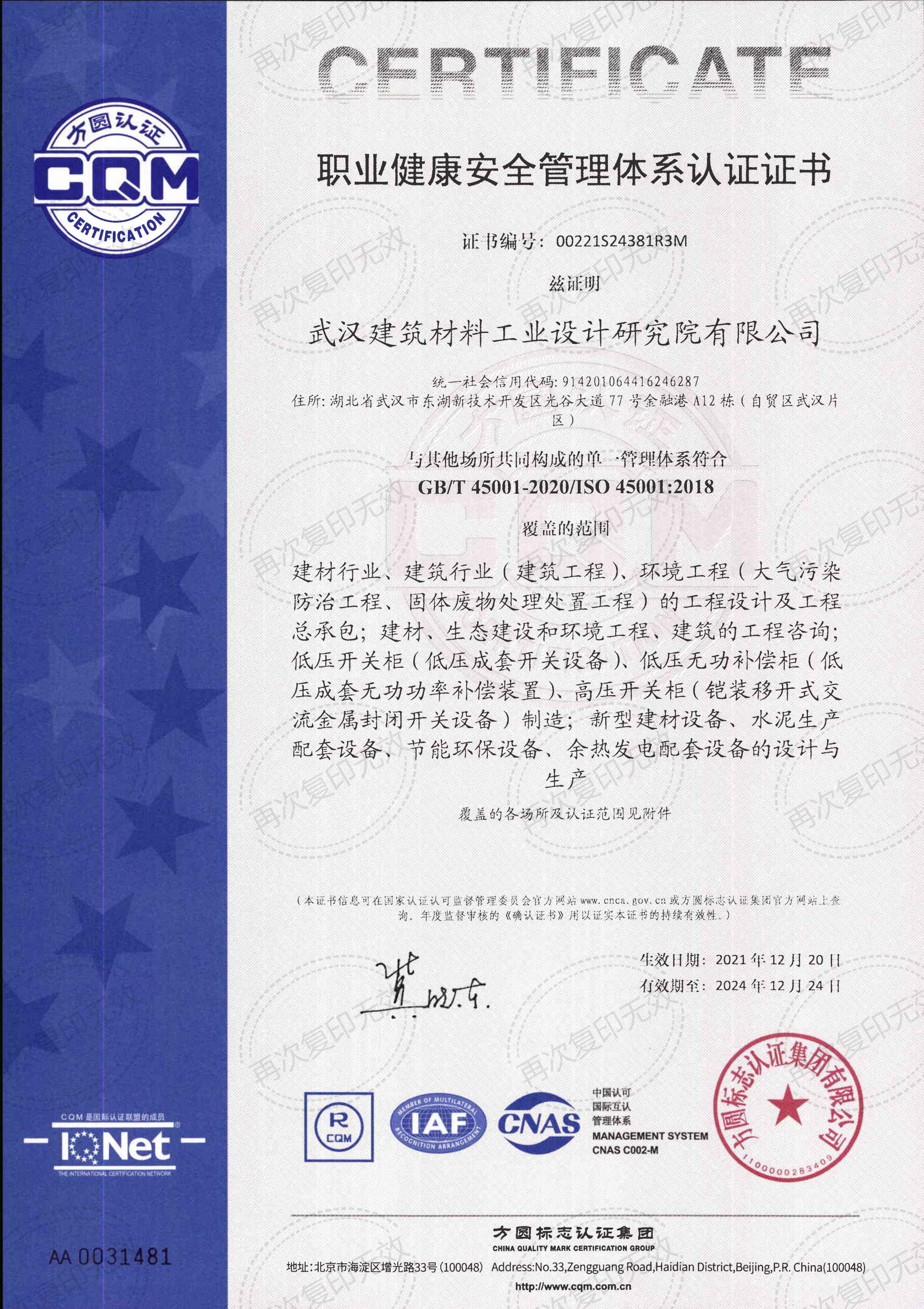 職業(yè)健康安全管理體系認(rèn)證
