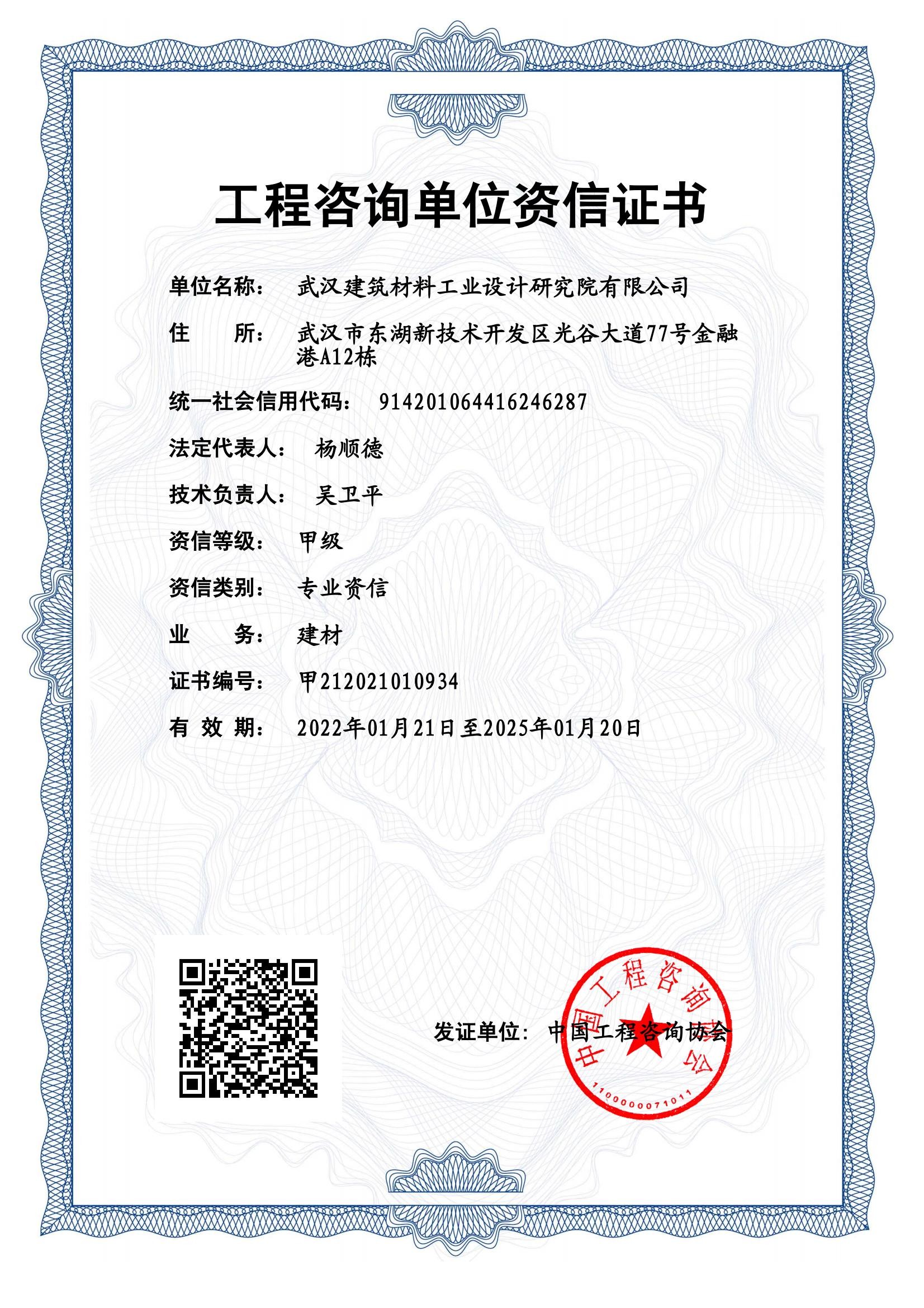 工程咨詢單位甲級專業(yè)資信(建材行業(yè))