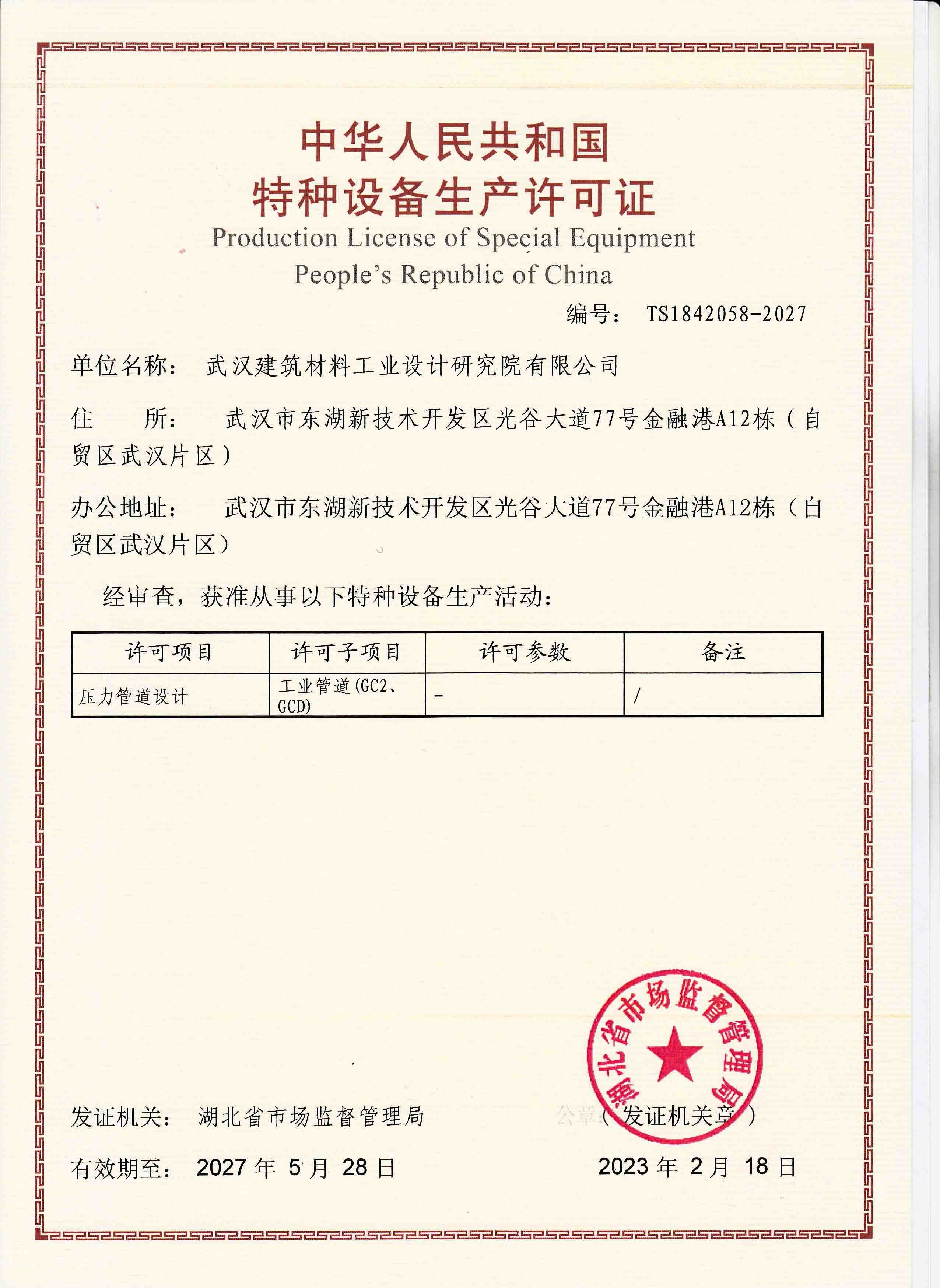 特種設(shè)備設(shè)計許可證(壓力管道)