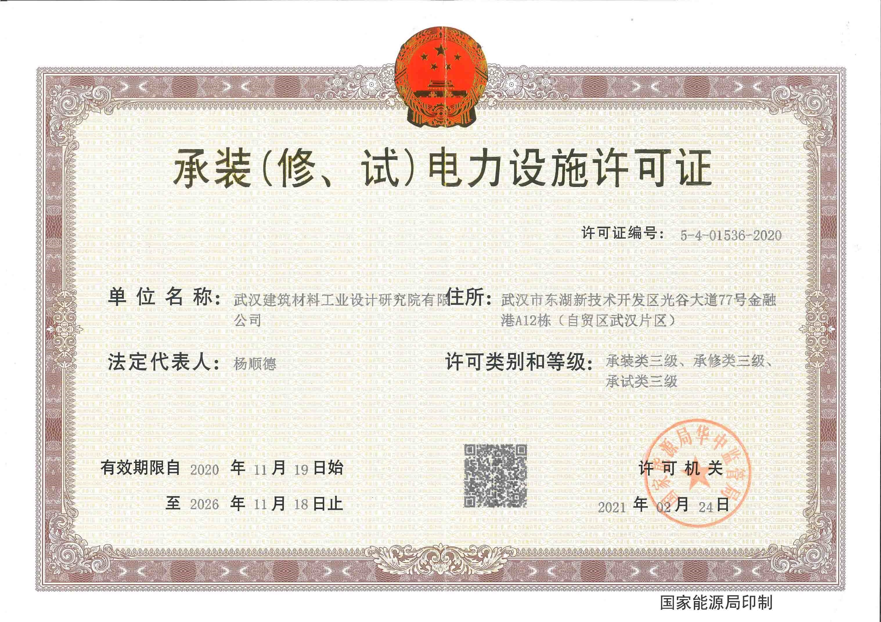 承裝(修、試)電力設(shè)施許可證