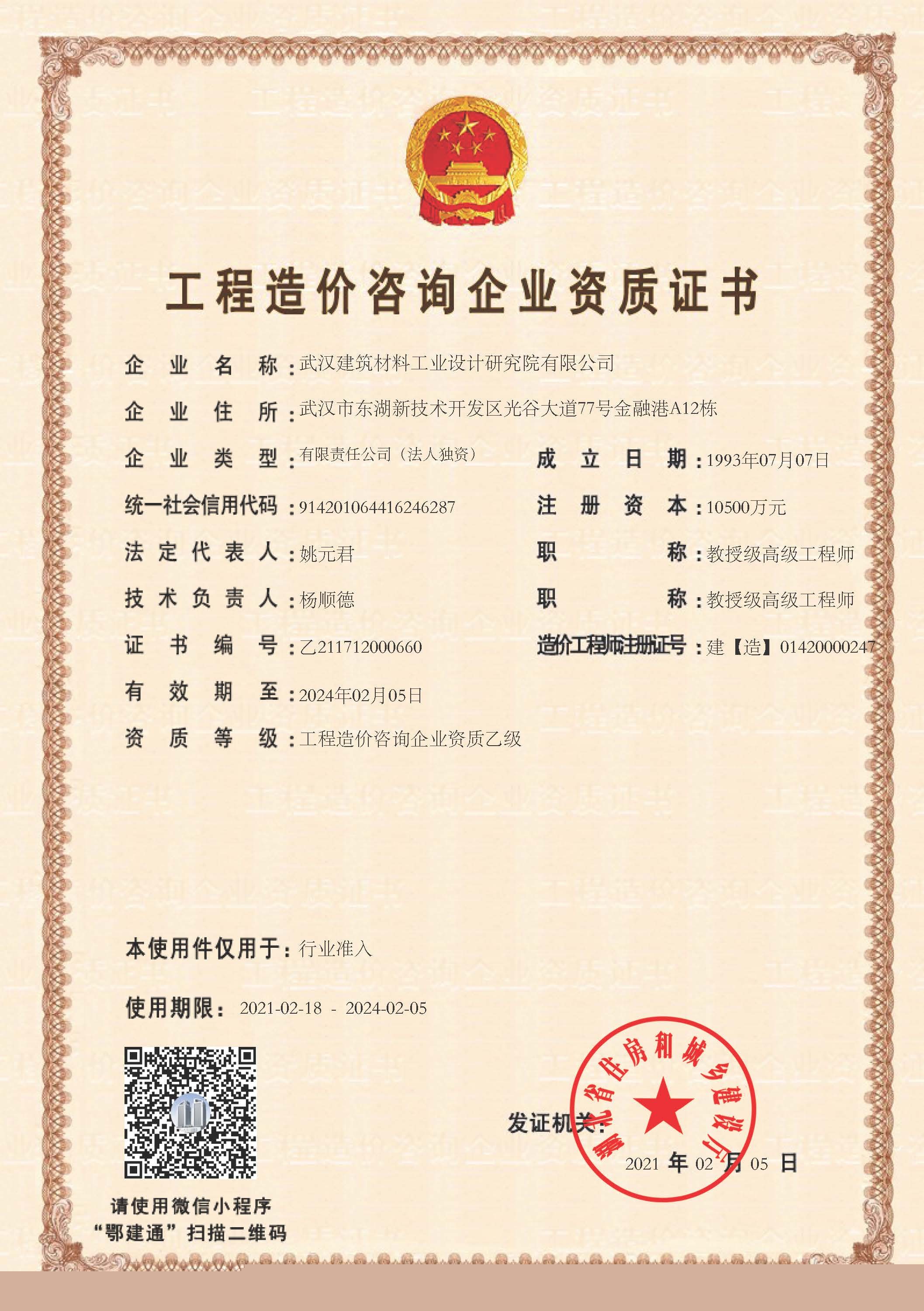 工程造價咨詢企業(yè)資質(zhì)證書