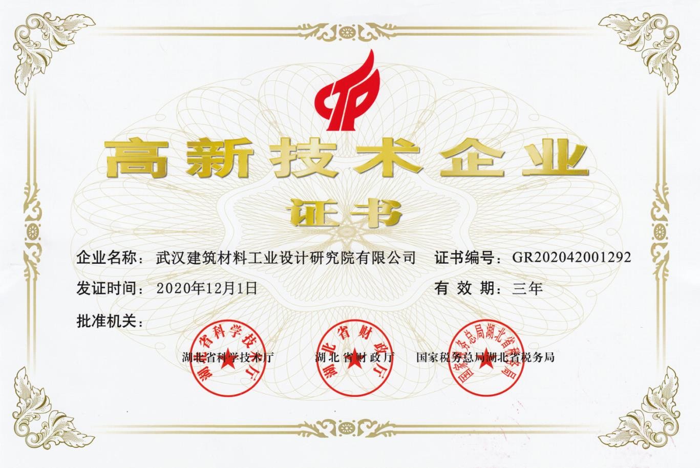 高新技術(shù)企業(yè)證書