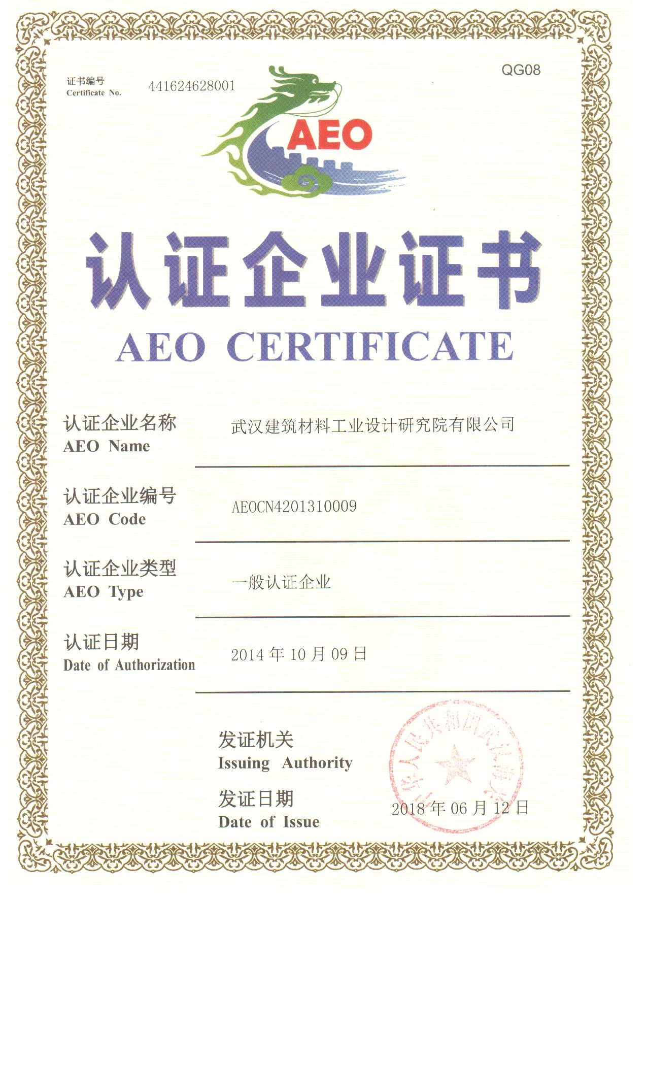 AEO認(rèn)證企業(yè)證書