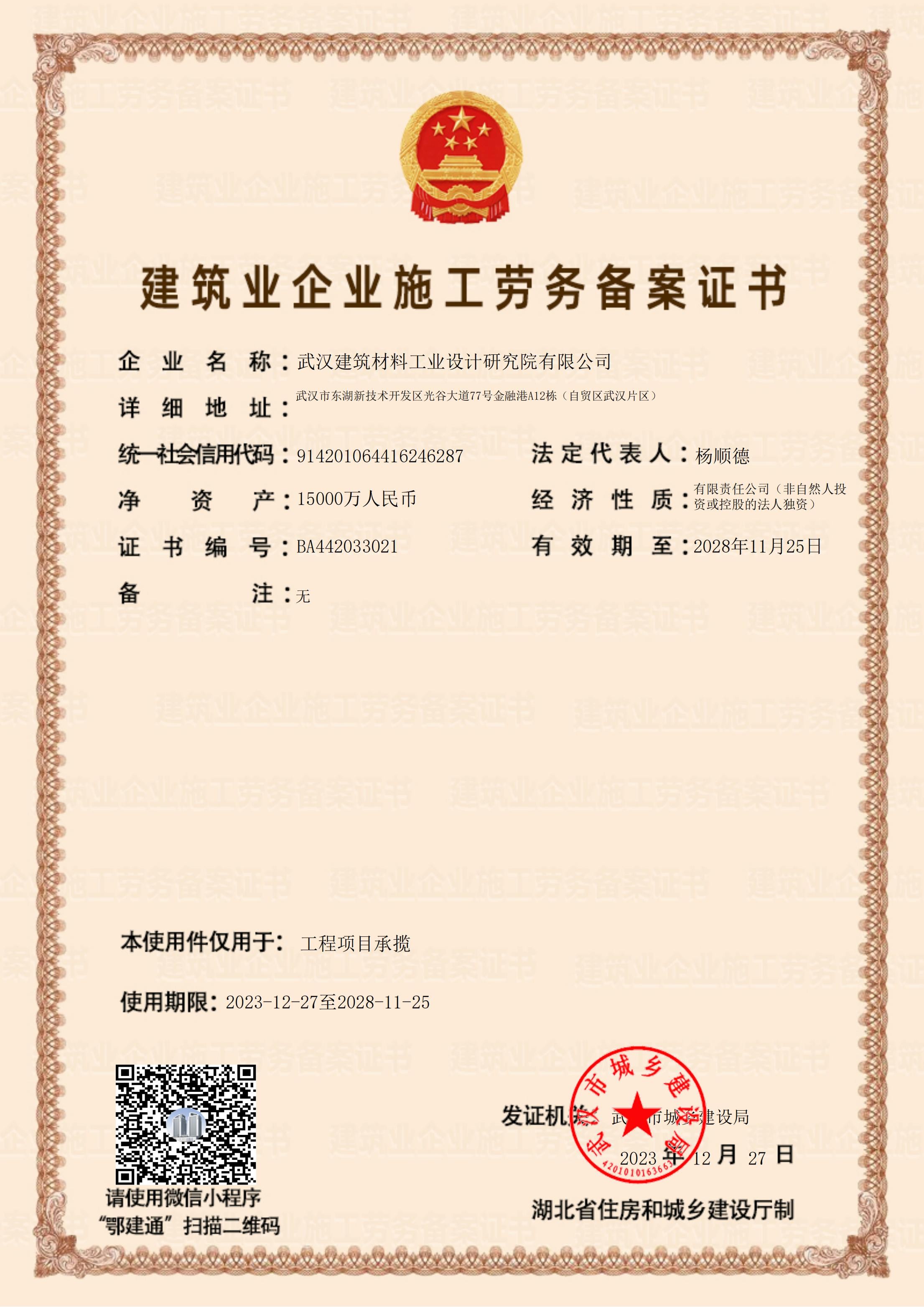 建筑企業(yè)施工勞務(wù)備案證