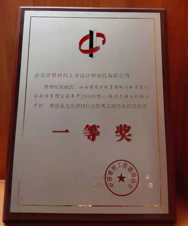 第九次建材行業(yè)優(yōu)秀工程總承包項(xiàng)目一等獎(jiǎng)1)
