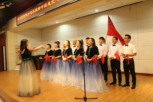 活動在全場齊唱國歌中開始,黨委書記馮明同志代表公司黨委作了重要講話。馮明同志在講話中回顧了新中國成立70周年以來的豐功偉績,講述了我國在各個領(lǐng)域與方向上取得的重大成就和進(jìn)展,表達(dá)了作為中國人強(qiáng)烈的民族自豪感與國家榮譽(yù)感;并希望公司全體員工立足本職崗位樹立以院為家的思想,肩負(fù)起國企擔(dān)當(dāng),為實現(xiàn)中華民族偉大復(fù)興的中國夢而努力奮斗。最后馮明同志代表公司黨委向公司全體員工及家屬致以節(jié)日的美好祝福。公司黨委副書記殷中華宣布“逐夢新時代·歌唱我的祖國”主題歌詠活動開始。