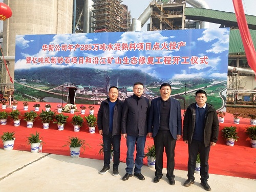 2020年12月28日,我公司姚元君董事長受邀參加華新水泥股份有限公司年產(chǎn)285萬噸水泥熟料項目點火投產(chǎn)暨億噸機制砂石項目和沿江礦山生態(tài)修復工程開工儀式。