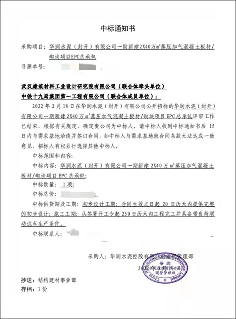 3月9日,中材節(jié)能所屬武漢建筑材料工業(yè)設計研究院有限公司(以下簡稱“武漢建材院”)成功中標華潤水泥(封開)有限公司一期新建2×40萬m³蒸壓加氣混凝土板材/砌塊項目EPC總承包工程。該項目是武漢建材院近年來在新材領域合同金額最大的項目,這不僅是武漢建材院與華潤水泥進一步深化合作的里程碑,更是武漢建材院在加氣混凝土行業(yè)堅持不懈、厚積薄發(fā)、引領發(fā)展的充分體現(xiàn)。