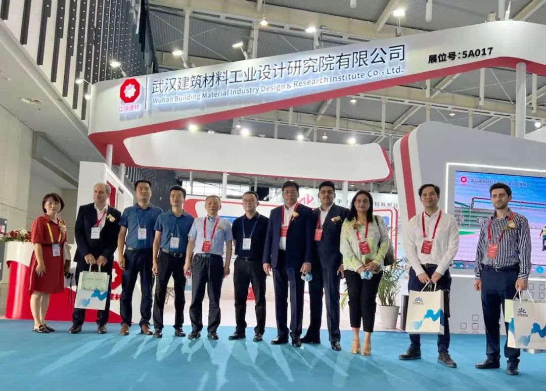 下午,“一帶一路”沿線國(guó)家駐華使館經(jīng)濟(jì)商務(wù)官員在中國(guó)混凝土與水泥制品協(xié)會(huì)執(zhí)行會(huì)長(zhǎng)徐永模陪同下到訪武漢建材院展位,進(jìn)行了國(guó)際推介與充分交流。